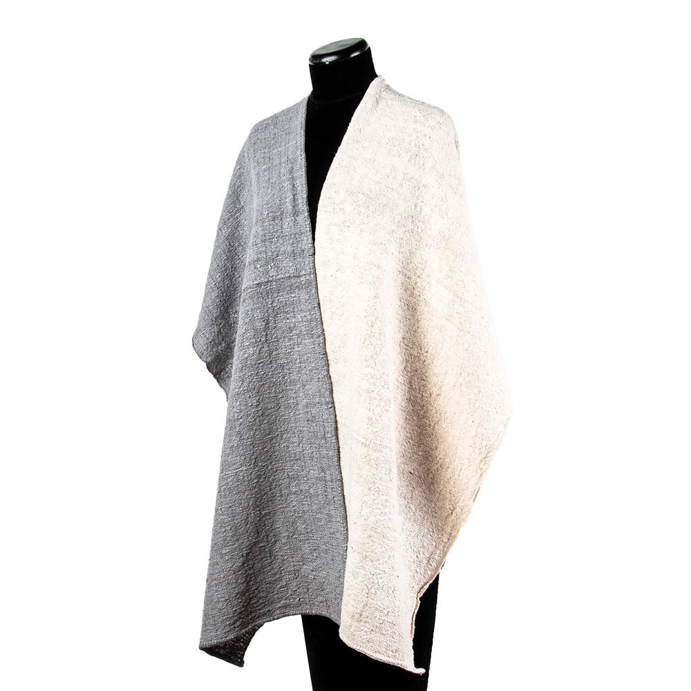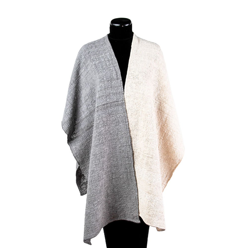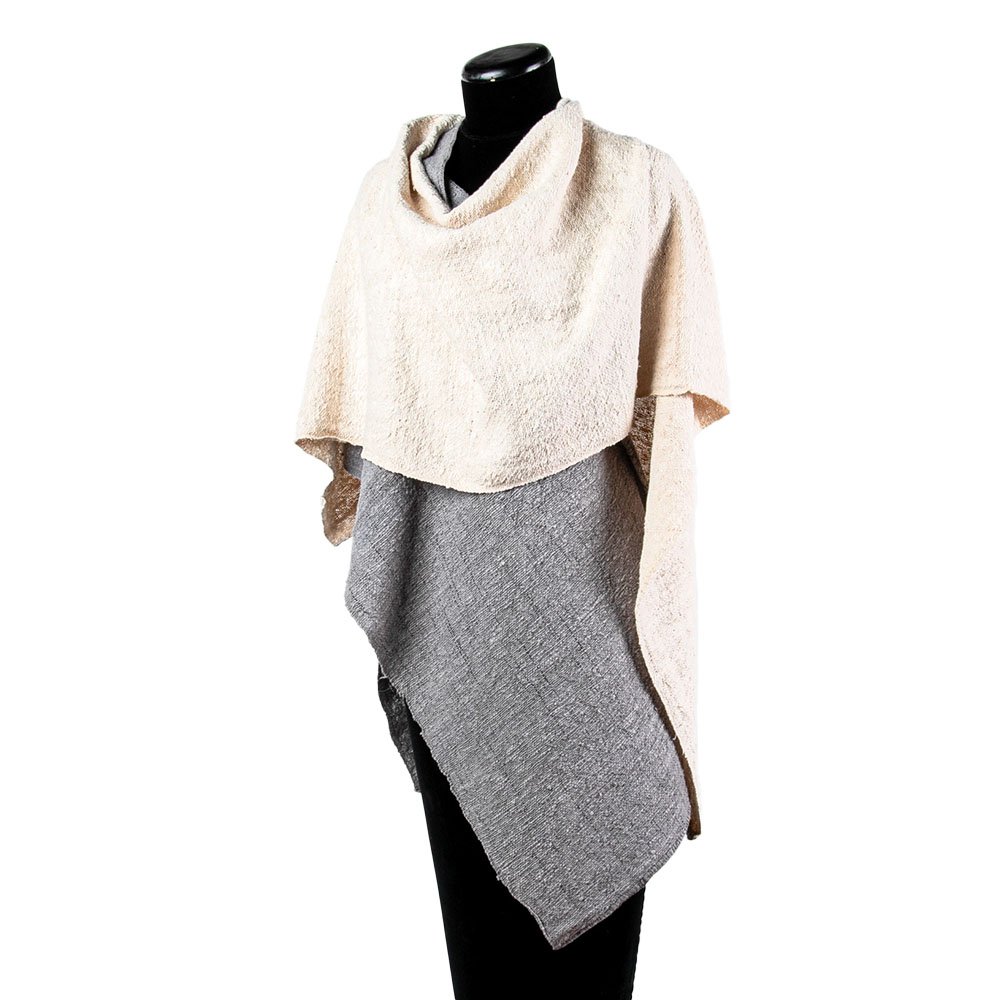 Ruana tejida en telar horizontal elaborada en algodón orgánico por artesanos de Charalá Santander.